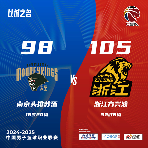 JRS直播网讯:北京时间3月9日CBA常规赛第38轮,客场作战的浙江方兴渡以105-98击败南京头排苏酒。巴里·布朗38分6篮板5助攻,郭昊文24分3篮板4助攻。