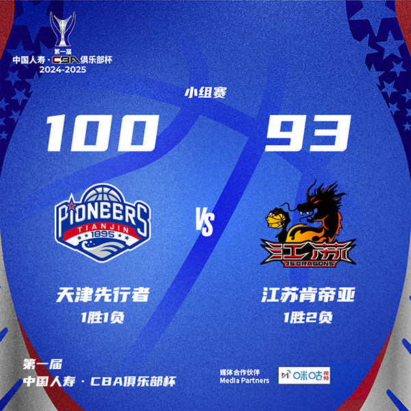 JRS直播网11月15日讯 CBA俱乐部杯定州赛区,天津对阵江苏。上半场,天津双外援率先发力帮助球队取得领先,江苏内外开花奋力反击,古德温得分助攻一肩挑带队反超,拉维特挺身而出连续拿分稳住局势,大卫-詹姆斯也延续火力,半场战罢天津55-49领先江苏。下半场,天津率先发力,多点开花将分差拉开到20分以上,江苏奋力反击回敬13-0的攻击波,末节双方陷入缠斗,江苏多次迫近比分,天津及时回暖锁定胜局。最终,天津100-93击败江苏。