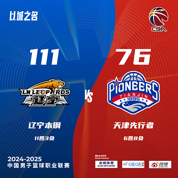 JRS直播网讯北京时间112月6日讯 CBA常规赛,辽宁主场迎战天津,辽宁目前10胜3负,天津则是6胜7负。本场比赛,张镇麟迎来本赛季首秀;天津外援大卫-詹姆斯缺阵。比赛开始,威尔斯上来接连突破还送出两记漂亮暴扣取分,付豪替补上来内线也3中3,辽宁迅速建立主动权,时德帅两记三分止血后张镇麟三分拿到赛季首分,首节辽宁领先11分,次节威尔斯继续里突外投带领辽宁18-4进攻高潮拉开20分以上领先,随后弗格和付豪继续发力,辽宁半场领先30分。下半场,天津派上全华班练兵,辽宁继续扩大领先,随后辽宁也换上年轻球员练兵,双方命中率有下降但辽宁还保持30分左右领先,末节辽宁进攻端突然停滞,天津顺势13-4攻击波一度追到20分以内,但付豪有攻有传带队回应10-0稳住局势,最终辽宁还是111-76轻取天津。