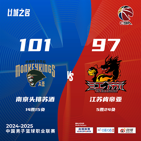 JRS直播网讯北京时间1月10日讯 CBA常规赛继续进行,同曦主场迎来与江苏的同省德比,林葳因流感休战两场后复出,同曦近期遭遇连败,13胜15负暂列联赛第11位,江苏上场不敌广州,5胜23负继续排在联赛倒数第二。首节开打后双方便陷入缠斗,同曦双外援利夫和哈里斯杀伤内线,江苏三外援古德温、汤普森和杰克逊轮番回应,两队比分始终紧咬,首节结束时江苏领先1分,次节回来,双方依然杀得难分难解,哈里斯延续手感予取予求,江苏火力不减强势回应,末段林葳联手哈里斯突然发力,半场战罢,同曦反超5分。易边再战后双方火力放缓,古德温单节11分率队追分,但同曦多点开花牢牢占优,三节结束后同曦依然领先5分,末节决战,江苏难以打出追分高潮,同曦始终保持两位数左右的领先,末段杰克逊飚中三分仍难救主,最终同曦101-97力克对手终结连败。