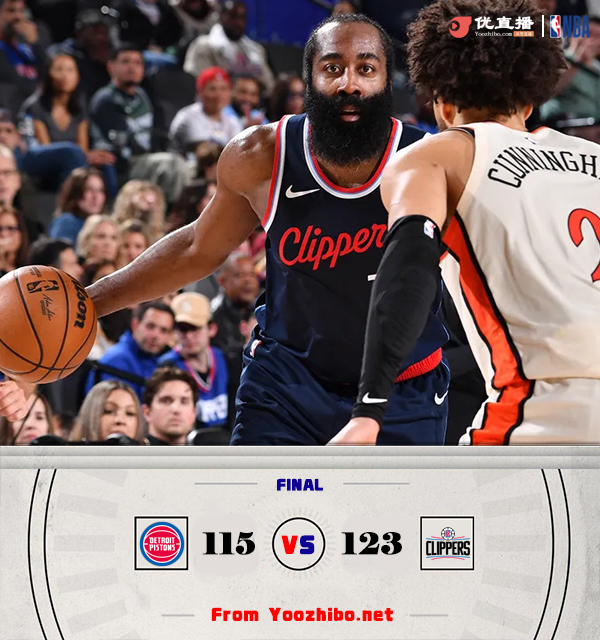 JRS直播网讯讯3月6日讯 NBA常规赛今日继续开打,快船坐镇主场迎战活塞。快船本场背靠背作战,因此球队核心莱昂纳德伤病管理休战,同时鲍威尔、西蒙斯也均缺阵。快船缺少多名核心的情况下压力来到了哈登身上,不过他开局状态爆表连砍17分,连续三分外加制造对手三分犯规的疯狂表现为球队取得两位数领先;整个第一节快船拿到32分,哈登独揽其中23分;活塞开局被当头一棒,不过他们抓住快船轮换薄弱的机会在末段连续追分稳住局面;次节活塞在局面上压制快船不断蚕食分差,最后时刻一波7-0的攻势抹平比分进入下半场。休息归来双方持续拉锯,哈登和康宁汉姆率领各自球队展开博弈势均力敌,末节决胜博格达诺维奇命中两记三分率先发难,随后哈登再度站出来连续单打轰下11分,他的疯砍表现帮助快船拉开比分奠定胜局。最终,快船力克活塞结束3连败。