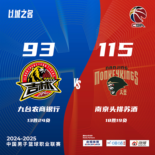 JRS直播网讯北京时间3月7日讯 CBA常规赛,吉林对阵同曦,上场比赛吉林击败四川结束2连败,同曦则是最近遭遇2连败,本场比赛林葳缺阵。开场后两队你来我往多次打成平手,第一节尾声毕格柏和栾利程联手帮助吉林取得微弱优势。第二节哈里斯上来接连砍分帮助同曦反超比分,郭昊文也是频频拿分,不过吉林及时调整做出回应,两队陷入僵持,第二节尾声依旧是哈里斯和郭昊文联手拿分帮助同曦建立优势,琼斯及时站出来帮吉林将分差咬在个位数。易边再战,同曦上来先外线开火,吉林也及时回应,两队围绕十分拉锯。第三节后半段同曦掀起反扑将分差拉大到20分以上。最后一节琼斯虽然努力带领吉林追分,但同曦总能及时回应,分差始终在两位数,最终同曦115-93轻取吉林。