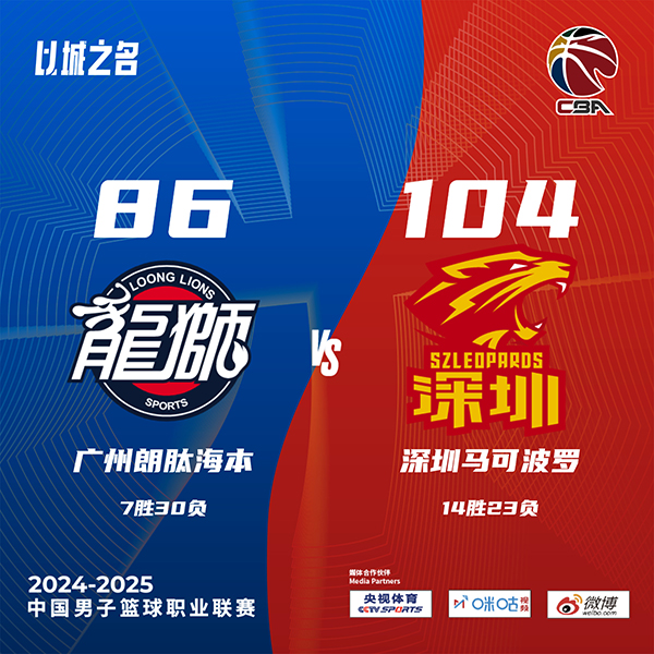 JRS直播网讯北京时间3月8日中国男子篮球职业联赛 常规赛,广州朗肽海本对阵深圳马可波罗。半场广州42-55深圳,最终广州86-104深圳。广州朗肽海本张兴亮16分4板3助,袁照耀12分5板1助;深圳马可波罗马凯尔-约翰逊24分4板9助,贺希宁23分4助。