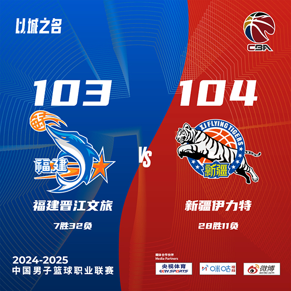 JRS直播网讯北京时间3月14日中国男子篮球职业联赛 常规赛,福建晋江文旅对阵新疆伊力特。半场福建47-50新疆,最终福建103-104新疆。福建晋江文旅路易斯-金25分11板5助,约瑟夫-杨22分1板1助;新疆伊力特齐麟28分10板3助,赵睿20分4板4助。