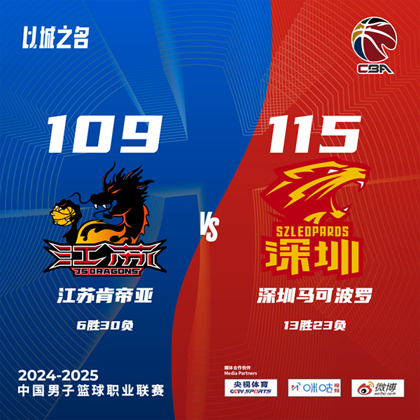 JRS直播网讯北京时间3月6日讯 CBA常规赛,江苏对阵深圳。江苏6胜29负排在联赛倒数第二,已确定无缘季后赛。深圳12胜23负排在第14。上半场,双方开场势均力敌,比分咬得很紧,富兰克林-杰克逊连续拿分带队完成13-4的攻击波取得领先,深圳内外开花迅速追赶,次节江苏火力更猛,富兰克林-杰克逊和阿奇-古德温联手带队重获两位数优势,半场战罢江苏73-58领先深圳。下半场,江苏命中率下降,周鹏带队不断迫近比分,末节周鹏补篮反超比分,双方争夺陷入白热化,李承耀出现违体犯规,周鹏稳定输出帮助球队保持4分优势,江苏发球5秒违例,最终,深圳115-109力克江苏。