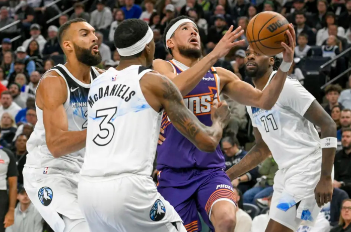 JRS直播网讯北京时间11月18日,NBA常规赛太阳客场117-120惨遭森林狼绝杀,布克轰下44分7助攻6篮板却在关键时刻哑火,最后3分多钟太阳被森林狼打出13-3的反击高潮,生死时刻连续三次打铁,最终兰德尔三分压哨绝杀。