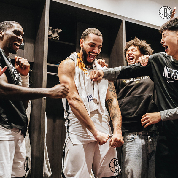 浇水之后,篮网全队一起吼叫,现场氛围太好了。