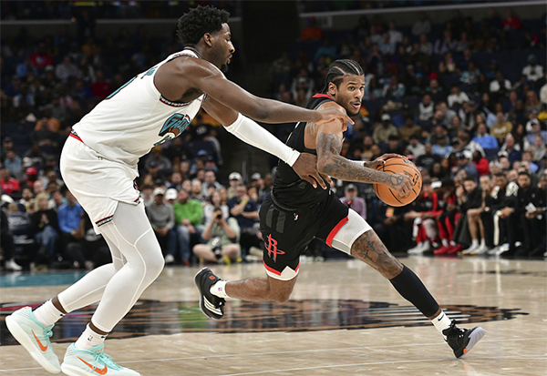 西部第二和西部第三之间的关键卡位战,申京和莫兰特双双缺席比赛,第一节火箭多点开花,首节38-33领先灰熊5分,狄龙战旧主手感火热,首节6投4中、三分3中2贡献10分,杰伦-格林5中3拿到9分2助攻,阿门送出精彩的钉板大帽。