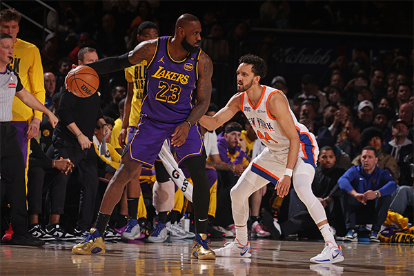 湖人做客麦迪逊广场花园球馆,浓眉因伤继续休战,40岁的詹姆斯早早开启进攻模式,里突外投火力全开,闪耀麦迪逊。