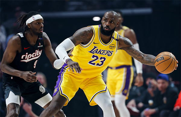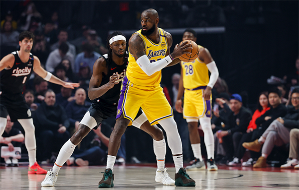 末节詹姆斯外线连中两记三分,单挑格兰特撤步中投,骑马射箭漂移抛投,老詹连得10分带队扩大优势,开拓者继续反扑,詹姆斯助攻里夫斯命中三分;最后3分钟,詹姆斯和里夫斯接连失误,1分36秒里夫斯关键两罚全中,1分19秒詹姆斯盖帽立功,开拓者继续追分,詹姆斯致命失误,不过所剩时间太少,开拓者只能采用犯规战术,老詹罚球彻底杀死比赛,最终湖人在客场惊险拿下比赛。