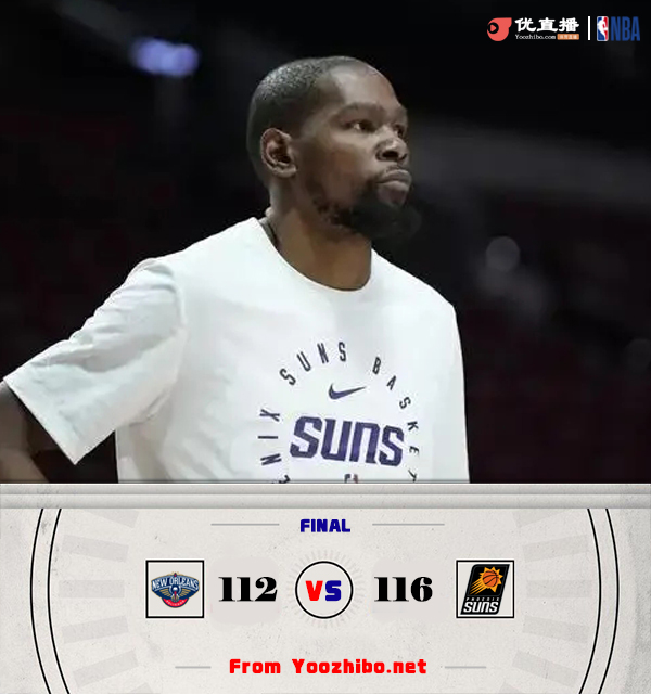 鹈鹕124-116战胜太阳 锡安27+10+11 杜兰特28+5 布克36+7+9