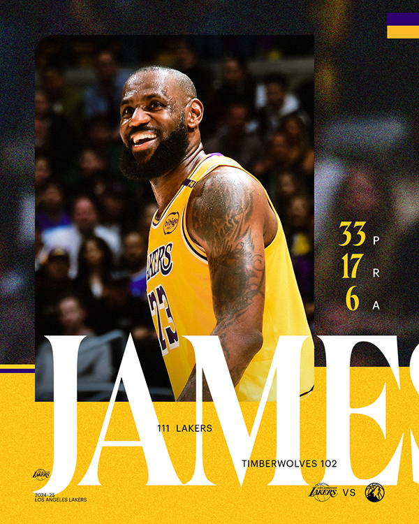 JRS直播网讯北京时间2月28日,NBA常规赛湖人主场111-102击败森林狼,喜提四连胜的同时重返西部第四,詹姆斯又打出全能一战,全场21投11中、三分9中4拿到33分17篮板6助攻1抢断1盖帽,比赛最后时刻,詹姆斯提前离场并跑回更衣室。