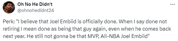 该记者表示他不认为恩比德会医疗退役,只是回答球迷的问题而已。