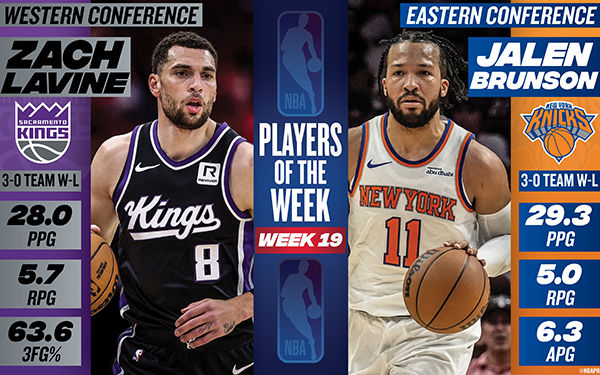 JRS直播网讯北京时间3月4日,NBA官方揭晓了2024-25赛季第19周东西部周最佳球员归属。纽约尼克斯队的杰伦-布伦森与萨克拉门托国王队的扎克-拉文分别凭借统治级表现荣膺殊荣,而勒布朗-詹姆斯、斯蒂芬-库里、卢卡-东契奇等超级巨星虽提名却未能折桂。