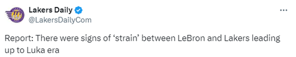 还写道:虽然这其中的关系很微妙,但答案是这样的:当时尚不清楚詹姆斯会如何应对自己亲密好友兼队友被交易离队的局面;球队用他换回了一位同样技术精湛但更年轻的球星,后者将立即成为湖人队计划中最重要的球员;詹姆斯与湖人队的合作关系已经显现出紧张的迹象。若看不到切实希望,双方是否愿意在今夏之后继续合作,疑问重重。人们很好奇,詹姆斯将如何应对与东契奇即将开启的新篇章。