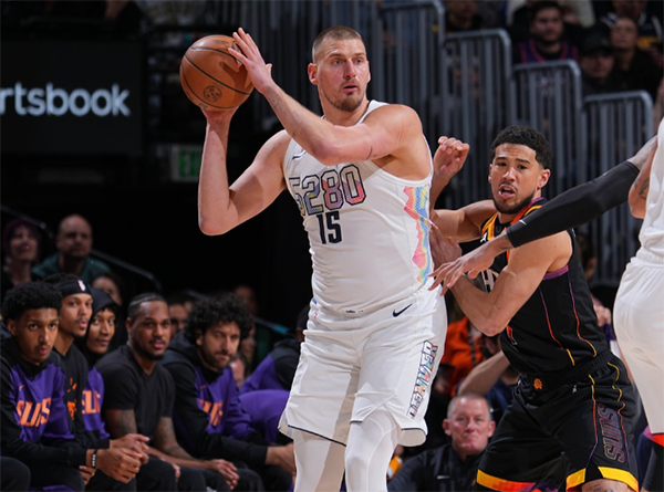 主场大战太阳,前三节约基奇打得十分轻松,期间掘金一度领先到21分,之后太阳反扑追分,末节掘金在关键时刻哑火并且被太阳反超,约基奇助攻布劳恩命中关键三分,杜兰特轰进压哨绝平三分;加时赛约基奇得分以及助攻带队一波流带走比赛,最终掘金拿下胜利,约基奇创造新的历史,赛后约基奇获得比赛用球。
