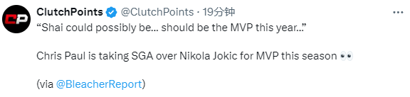 接受采访时,保罗公开直言亚历山大将赢得本赛季的常规赛MVP,保罗表示:谢伊有可能成为,应该成为本赛季的MVP。他们找到了让每个人都提升的方式,每个在他们球队中的球员都更好了,杰伦-威廉姆斯入选了全明星,戴格诺特给了他们打球的自由。