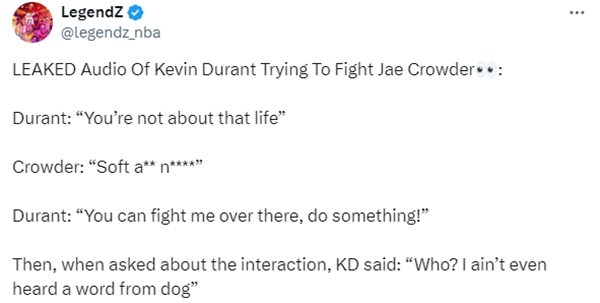 克劳德双手抄兜并回击:软蛋尼格;杜兰特放狠话约架:做点什么、做点什么,你可以在那里和我打一架,来点实际的。