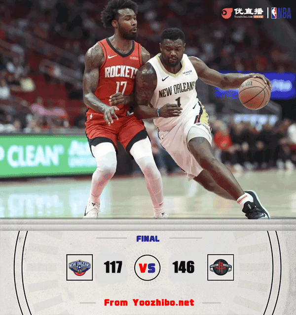 JRS直播网讯 北京时间3月9日讯 NBA常规赛,火箭今日再战鹈鹕,上场比赛火箭以12分优势拿下对手,后者则是遭遇两连败,此役范弗里特、谢泼德和琼斯等人缺战。比赛上来,火箭就率先进入状态打出7-1的开局,伊森和阿门的连续抢断帮助球队将分差拉开到两位数,次节鹈鹕依旧无法限制火箭的攻势,分差一度达到了二十分,好在是阿尔瓦拉多连续得分完成止血,半场结束时鹈鹕还落后16分;下半场回来,场上情况没有丝毫改变,火箭连续第三个单节拿到35+,分差再次突破二十分,比赛在末节早已失去悬念,但阿门意外受伤提前退场,最终火箭再胜鹈鹕迎来连胜。