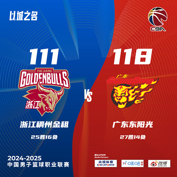 JRS直播网讯北京时间3月16日讯 CBA常规赛继续进行,广东客场挑战浙江,浙江助教鞠鹏场边执教,丁伟担任球队顾问,目前浙江25胜15负位列联赛第8,广东26胜14负排在联赛第6位。首节开打后浙江率先进入状态,琼斯内外结合独得12分,约克连投带罚续上火力,两人联手率队确立优势,首节结束时浙江领先11分,次节回来,浙江进攻出现停滞,广东回敬12-0攻击波蚕食分差,末段贝兹利和伯克连中三分,半场战罢,广东反超1分。短暂休整后广东延续火力内外开花,浙江进攻滞涩未能及时回应,三节结束后广东已经领先10分,末节决战,场上形势风云突变,约克无人可挡予取予求,浙江一度反超比分,但伯克连投带罚守住胜果,最终广东118-111力克对手。