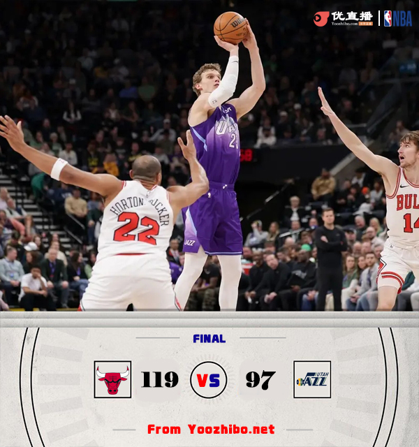 JRS直播网讯北京时间3月18日讯 NBA常规赛,公牛对阵爵士,公牛上场比赛惜败火箭依旧在东部第十,爵士最近遭遇9连败垫底西部。开场后公牛多点开花以10-0开局,爵士连续进攻内线得手缩小分差,不过公牛又是打出一波攻势将分差拉大到两位数。第二节上来爵士内外开花一波14-2的攻势完成反超,随后两队陷入拉锯战,依靠琼斯的一记三分,公牛上半场领先1分。易边再战,布泽利斯和琼斯联手打出一波小高潮帮助公牛再度领先,爵士外线手感不佳还是依靠冲击内线追分,公牛在进攻端表现稳定,场上分差一直维持在两位数,第四节爵士一度掀起反扑追到只差4分,但接下来爵士进攻突然断电,公牛回应12-0的攻势再度将比分拉开,最终公牛111-97送给爵士10连败。