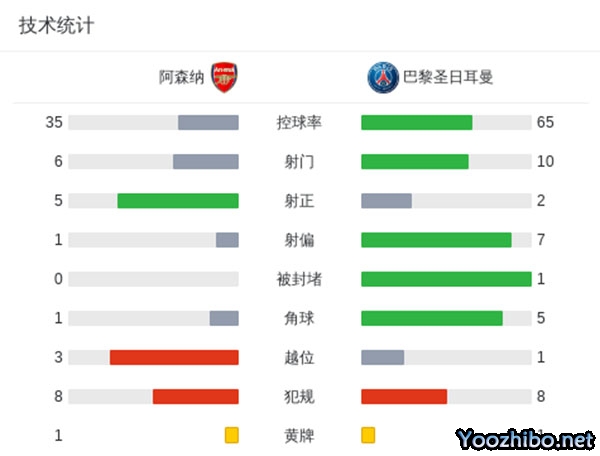 最终阿森纳2-0战胜巴黎圣日耳曼。