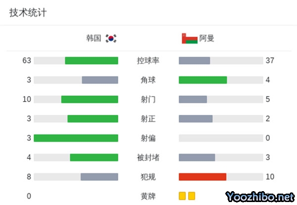 第80分钟,阿曼队扳平比分,阿曼队前场完成抢断,经过传递后,布赛迪弧顶内远射打入球门死角,阿曼队1-1韩国队。