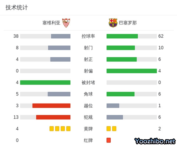 最终,巴萨4-1战胜塞维利亚,距离榜首仅差2分,暂列第3。