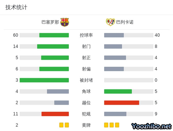 最终,巴萨1-0战胜巴列卡诺,取得西甲4连胜,以净胜球优势登顶西甲积分榜。