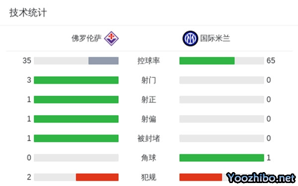 最终国米客场0-3不敌佛罗伦萨。