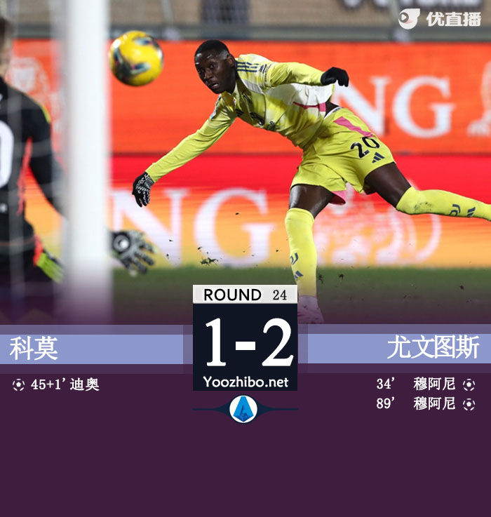 JRS直播网讯 北京时间2月8日凌晨3:45,2024-25赛季意甲联赛第24轮,尤文图斯在西尼加利亚球场客战科莫。上半场冈萨雷斯助攻穆阿尼破门,迪奥扳平比分,尤文图斯暂1-1科莫;下半场加蒂造点,穆阿尼点射锁定胜局,最终尤文图斯2-1科莫,收获联赛两连胜,先赛一场积分来到43分,暂时升至第四。