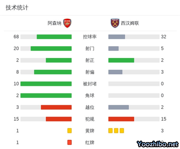阿森纳主场0-1不敌西汉姆距榜首8分 斯凯利染红