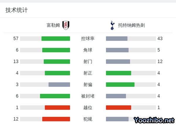 最终热刺0-2富勒姆三轮不胜仍居第13。