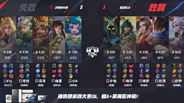 第三局,RW侠在前期稳定发挥,但在关键团战中无法有效防守,KLG借助舒尹的曹操反打破局,最终带着风龙稳扎稳打拿下比赛。本局MVP为深圳KLG舒尹 (陈雨麟)曹操!