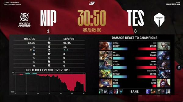 JRS直播网讯 北京时间2025年2月24日 2025LPL第一赛段淘汰赛第三日比赛,由NIP对阵TES!最终TES以3-1的大比分战胜NIP晋级下一轮对阵BLG。
