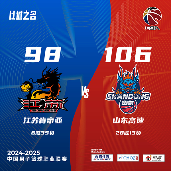JRS直播网讯北京时间3月17日讯 CBA常规赛继续进行,6连败的江苏主场迎战山东,山东目前27胜13负位列联赛第6,江苏6胜34负排在倒数第二。此役一上来两队你来我往比分紧咬,双方三外援联手取分陷入鏖战,首节结束时山东领先2分,次节回来,两队延续火力依然难分难解,摩尔连造杀伤对飚杰克逊,半场战罢,山东依然领先4分。易边再战后江苏进攻出现停滞,仅靠古德温一人苦苦支撑,山东内外开花不断拉开比分,三节结束后山东已经领先14分,末节上来,江苏没有放弃继续追分,但山东顶住对手反扑,最终山东106-98击败江苏送对手7连败。