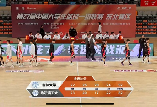 JRS直播网讯3月16日 CUBAL东北赛区1/8决赛,吉林大学对阵哈尔滨工业大学。小组赛吉林大学3胜1负,哈尔滨工业大学2胜2负。比赛开始,周鑫抢断后助攻吴孟霖反击上篮先拿2分,罗奕桐三分回应也为吉林大学开局。罗奕桐和段世镭接连取分帮助吉林大学建立主动权,周鑫、辛泽林和李泽诚接连3记三分止血并咬住比分,随后辛泽林外线还能命中,首节哈工大23-22领先吉林大学1分。次节上篮,林晓峰和刘滨畅接连三分命中,吉林大学7-0直接反超比分。暂停过后,高天艺造杀伤两罚全中止血,周鑫里突外投也能回应,双方展开拉锯战。吴孟霖连续扔进三分追平比分,刘滨畅三分回应,最后两分钟哈工大一分未得,段世镭再突破造杀伤,半场吉林大学48-43反超哈工大5分。易边再战,罗奕桐抢断反击追身三分拉开双位数领先,打了2分钟高天艺三分紧急止血,双方再次展开拉锯战。江龙三分开和后,双方命中率下降连续打铁,罗奕桐接王鹏助攻打停哈工大。周靖然和高天艺继续通过三分追分,林晓峰里突外投回应5分,三节吉林大学68-60依然领先哈工大8分。末节决战,刘滨畅和林晓峰外线连续发炮再次拉开双位数领先,辛泽林强打2+1止血,周鑫造杀伤再次追至个位数分差。暂停回来,周鑫反击扣篮再追2分,但无奈哈工大连续失误,罗奕桐接连三分砍下8分迅速回应,吉林大学拉开17分领先,随后哈工大无力回天,最终吉林大学92-82力克哈工大,晋级8强。