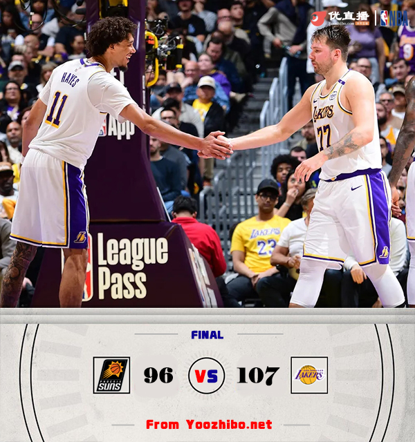 JRS直播网讯3月17日NBA常规赛,湖人主场迎战太阳。湖人已经经历4连败,目前40胜25负西部第5位;太阳则是31胜36负西部第11位。本场比赛是湖人5天4赛中的第3场比赛,海斯、芬尼-史密斯迎来复出;詹姆斯继续缺阵。比赛开始,湖人上来打出7-0不错开局,太阳迅速回应9-1反超,随后东契奇连续外线发炮带队建立主动权,文森特三分再中一度拉开20分领先,次节双方展开拉锯战,太阳三巨头状态不佳,外线颗粒无收,里夫斯接连中远投命中,海斯继续吃饼,半场湖人还领先17分。下半场,比尔因腿筋伤退,杜兰特连续中远投砍下8分带队一度追到个位数分差,东契奇又是送妙传止血后连续杀伤内线稳住领先优势,三节湖人还领先12分,末节双方命中率都有下降,里夫斯3+1后东契奇再打2+1帮助湖人牢牢守住双位数领先,最终湖人107-96击退太阳,终止4连败。