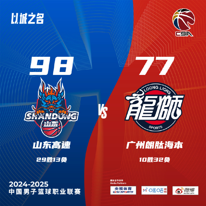 JRS直播网3月19日讯 CBA常规赛,山东今日迎战广州,前者近来取得两连胜,后者上场比赛则是输给新疆。比赛上来,山东表现慢热,而广州这边外线神准,连续的三分取得场上领先,首节末段更是将分差拉开到两位数,不过山东在次节初段就迅速抹平分差,这一节广州完全被对手压制住,单节只拿到15分,半场结束时山东已经反超14分;下半场回来,广州的表现依旧没有好转,单节得分依旧未能达到20分,但分差在三节结束时已经达到20分,末节比赛已经早早失去悬念,最终山东轻取广州迎来三连胜。